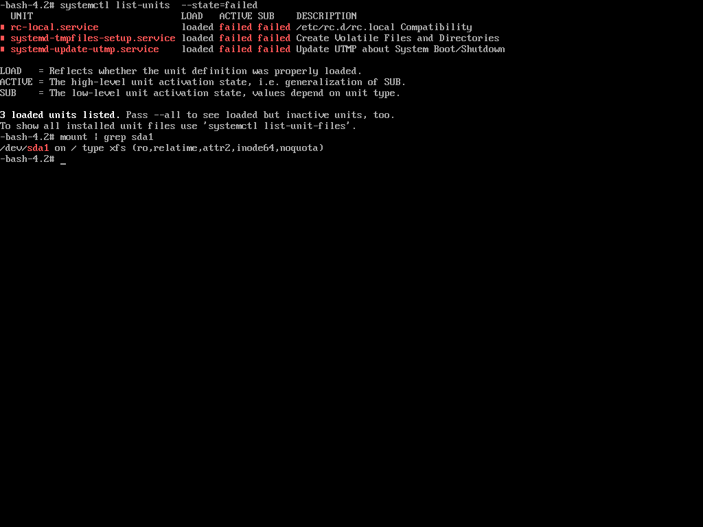 When booting, I saw a few units pass by in red before the login prompt popped up, by doing some quick investigation